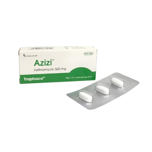 Azizi 500mg (thương hiệu Traphaco) là thuốc kháng sinh thuộc nhóm Macrolid, được sử dụng để điều trị các nhiễm khuẩn do vi khuẩn nhạy cảm với Azithromycin. Thuốc có hiệu quả trong các trường hợp: