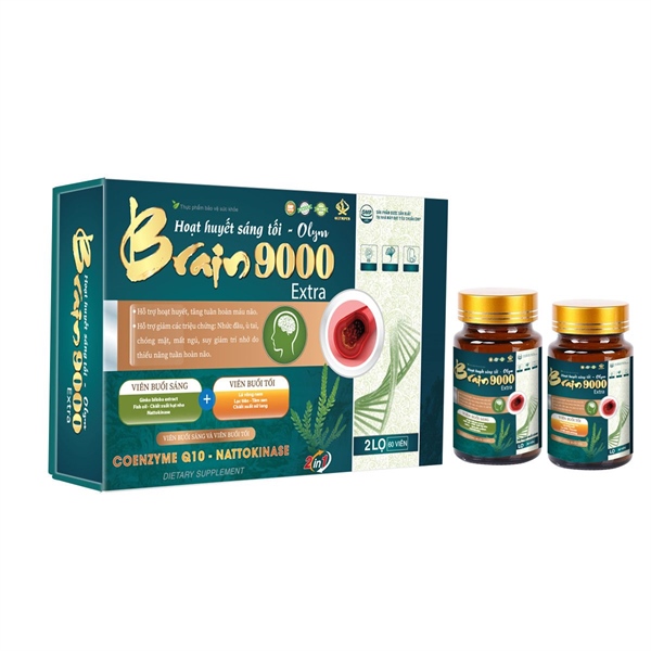Hoạt Huyết Sáng Tối Brain 9000 Olym Extra là thực phẩm bảo vệ sức khỏe giúp hỗ trợ tuần hoàn máu não, cải thiện trí nhớ, giảm đau đầu, chóng mặt, mất ngủ. Sản phẩm được nghiên cứu và phát triển bởi Olym Pharma, kết hợp công thức hoạt huyết Đông – Tây y giúp tăng cường sức khỏe não bộ.