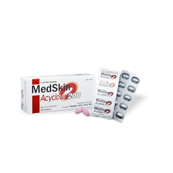 Medskin (Acyclovir 200mg) là thuốc kháng virus do Công ty Dược Hậu Giang (DHG Pharma) sản xuất. Thành phần chính Acyclovir 200mg thuộc nhóm thuốc kháng virus, chuyên dùng để điều trị nhiễm virus Herpes simplex (HSV), thủy đậu, zona.